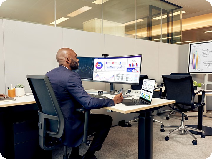Samsungs buede skjermer er spesielt utviklet for å gi økt komfort, høyere produktivitet og et elegant utseende. De beste buede skjermene leverer en visuell wow-effekt og egner seg for en rekke arbeidsoppgaver, fra kreative prosjekter til programvareutvikling. Fra å redusere belastningen på øynene til å skape et mer omsluttende miljø – her er det du kan forvente av Samsungs buede skjermer.