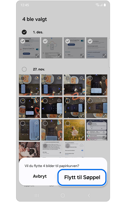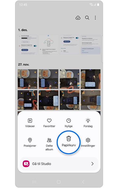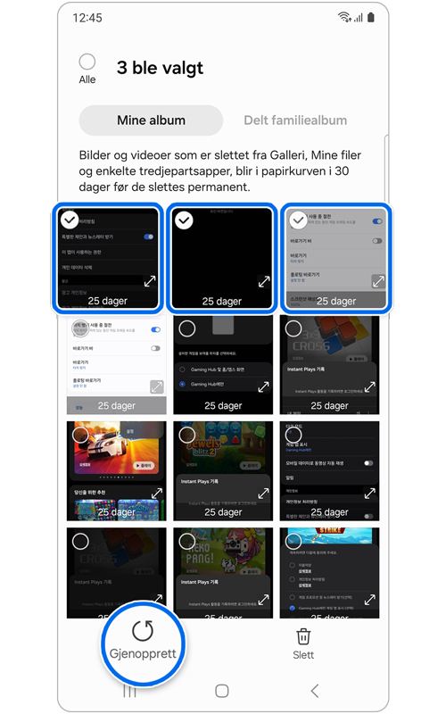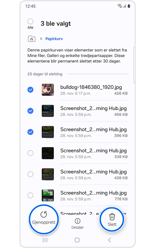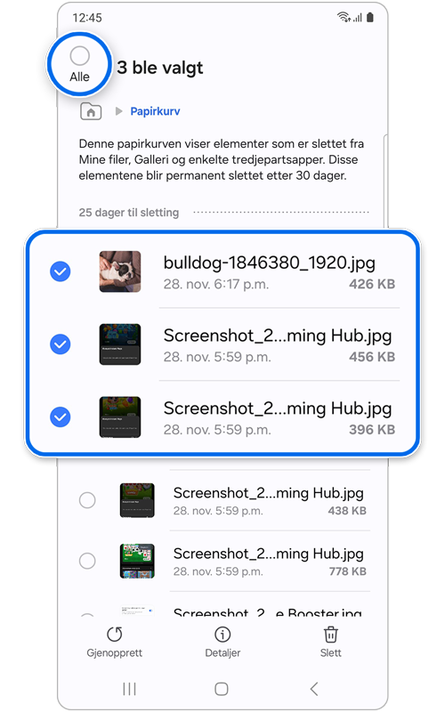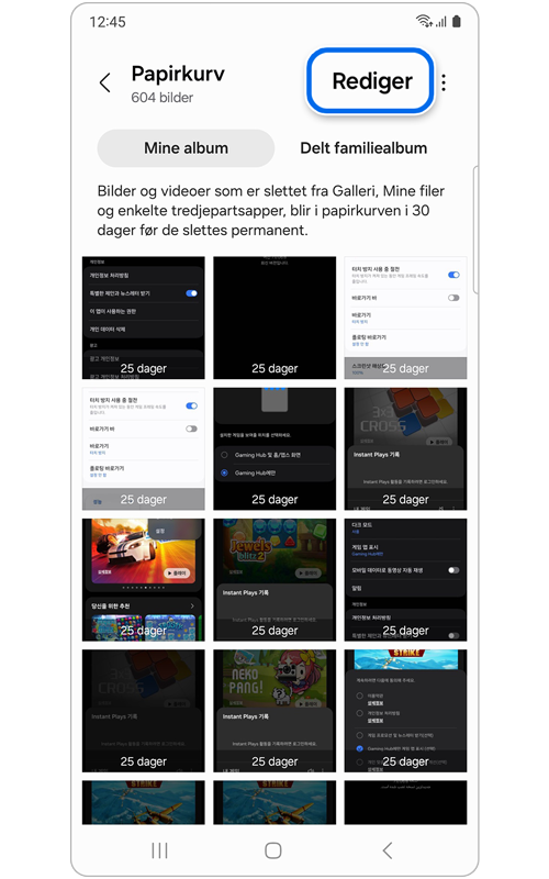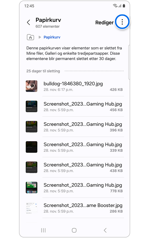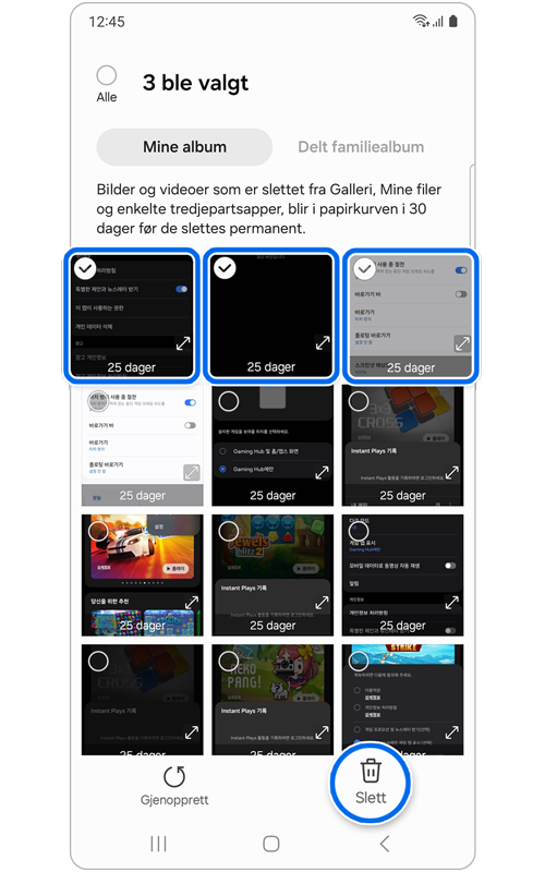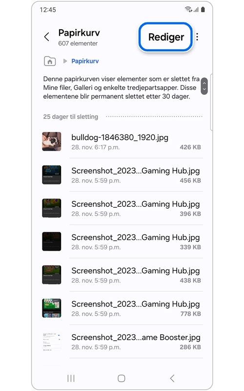 Selv om du kan bruke Mine filer til å administrere alle søppelfilene dine, kan du fortsatt bruke Galleri til å slette og gjenopprette bilde- og videofiler.