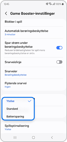 - Batterisparing: Velg dette alternativet for å begrense ytelsen på visse funksjoner, men samtidig maksimere batteribruken under spillet.