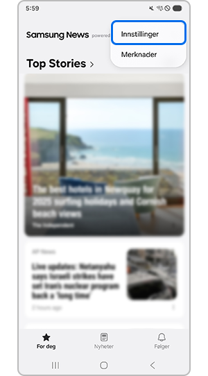 Trinn 1. Åpne Samsung News > Innstillinger.