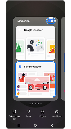 Du kan også konfigurere Samsung News som panelet som vises når du sveiper til høyre på startskjermen. Slik gjør du det: