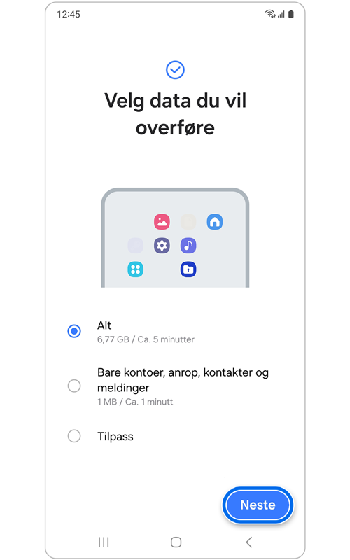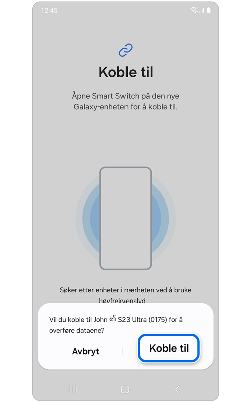 - Ny smarttelefon som dataene skal flyttes til