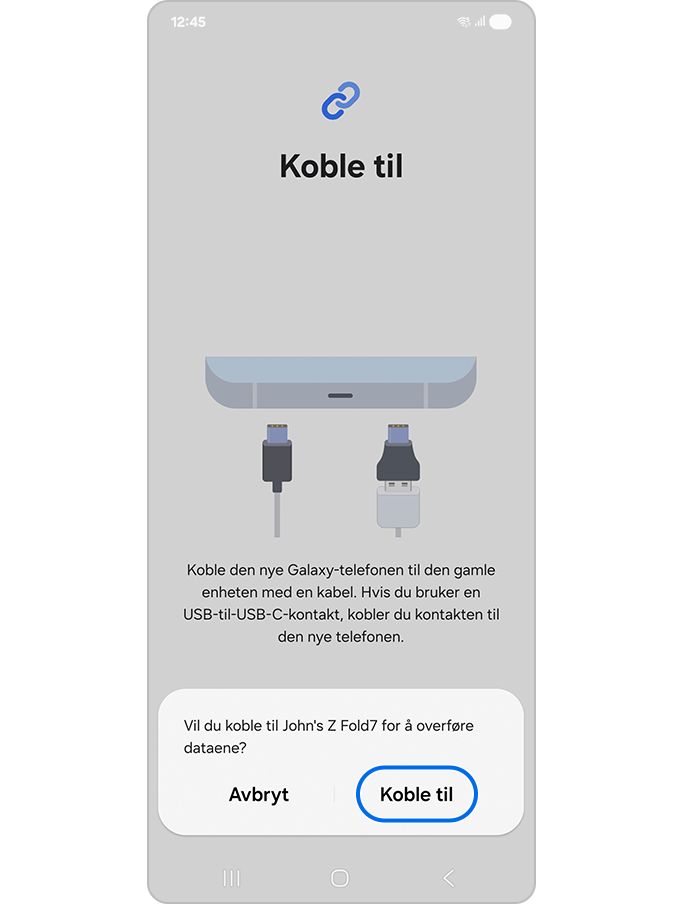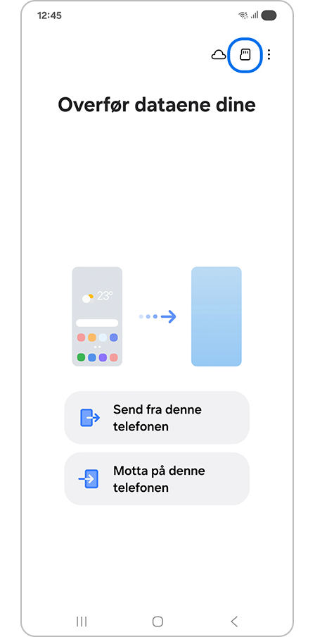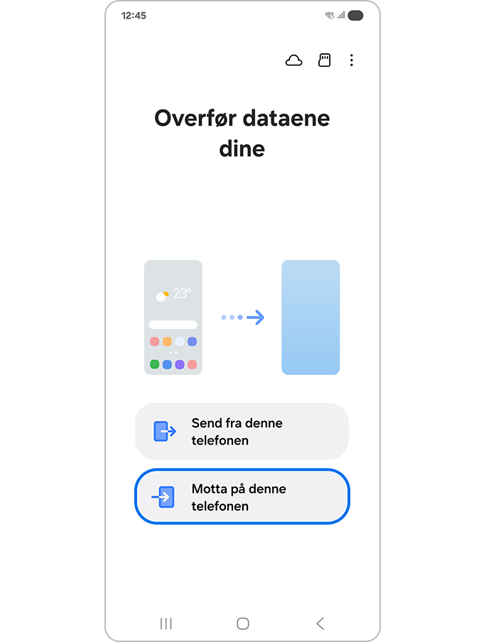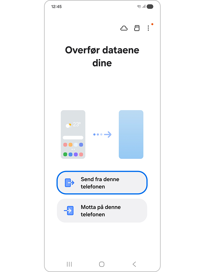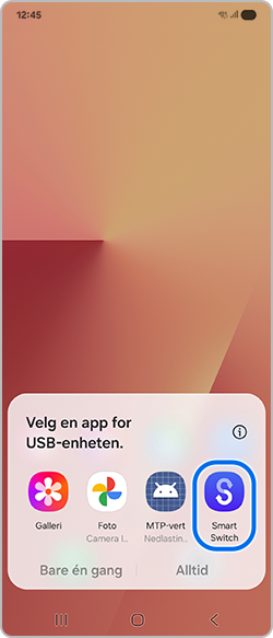 Merk: Hvis du velger Send fra denne telefonen, vises et popup-vindu på den andre enheten. Velg Smart Switch > Motta på denne telefonen eller Send fra denne telefonen.