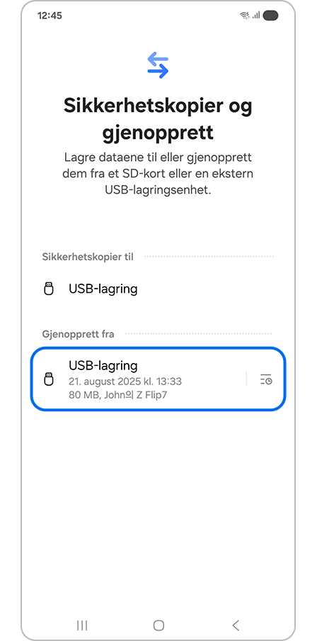Du kan sikkerhetskopiere og gjenopprette dataene dine ved å bruke Smart Switch-appen og et SD-kort. Vær oppmerksom på at enkelte telefoner ikke har åpning for SD-kort, så du vil trenge en kompatibel USB-kabel og SD-kortadapter.