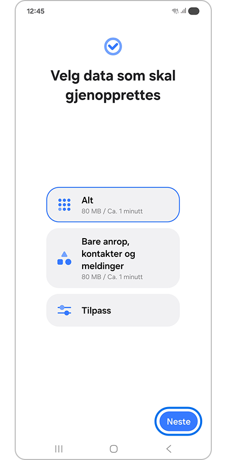 Merk: Hvis dette er første gang du bruker Smart Switch til å laste opp eller gjenopprette data, kan appen kreve noen tillatelser fra deg. Følg disse instruksjonene for å fullføre tillatelseskravet: