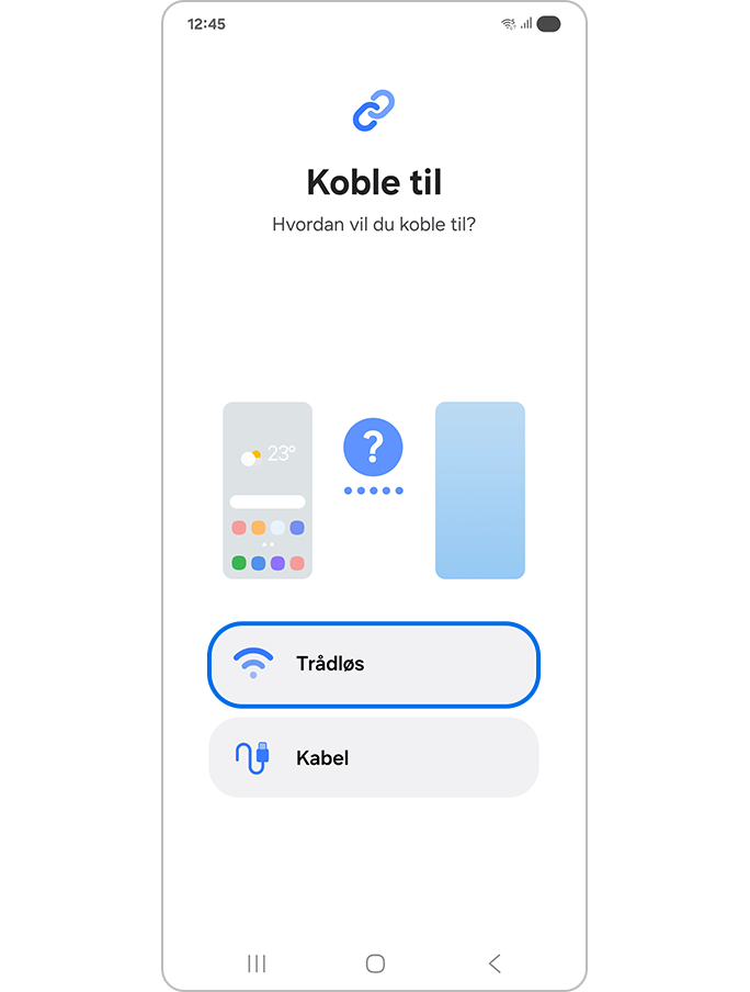 Trinn 3. På den gamle enheten velger du alternativet Trådløs, og på den nye enheten velger du typen til den gamle enheten (f.eks. Galaxy/Android).