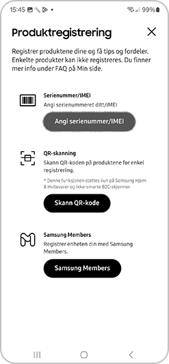 Hvis du har en Galaxy-smarttelefon eller -nettbrett, kan du også registrere enheten din med denne metoden: