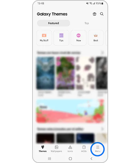 Start Galaxy Themes-appen og trykk på alternativet “Meny”.