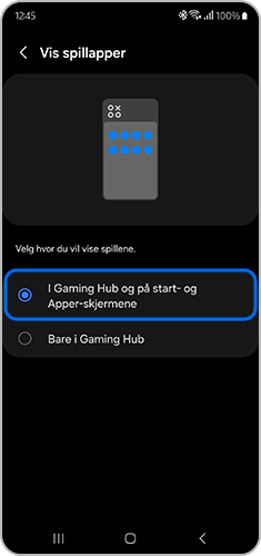 Vennligst bemerk: Hvis du bruker en tredjeparts hjem-starter annen enn Samsung One UI Home, så er alternativet “Vis spillapper” ikke synlig i Gaming Hub-innstillingene. Denne funksjonen fungerer bare på One UI Home.