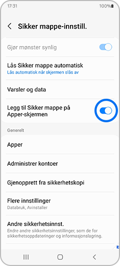For å legge til apper i din Sikker mappe, følg disse trinnene: