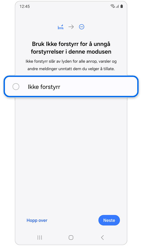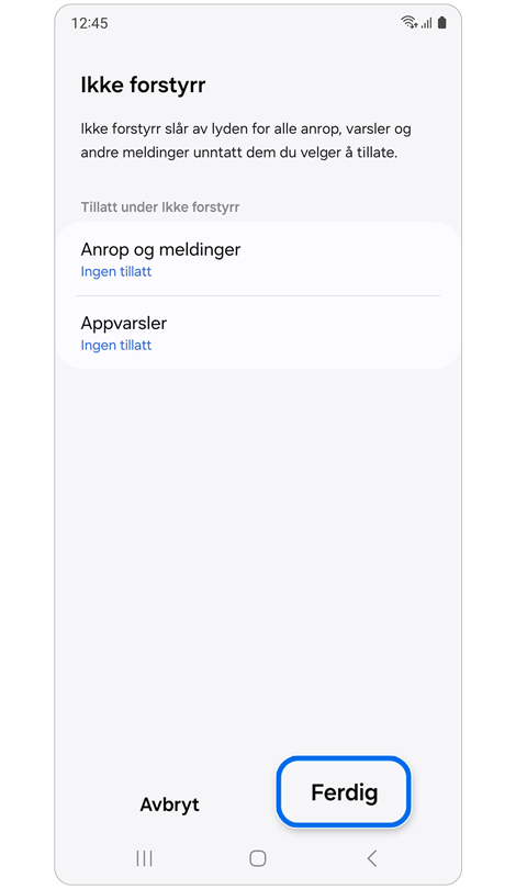 * Du kan også aktivere/deaktivere "Ikke forstyrr" fra hurtigpanelet ved å sveipe ned fra toppen av skjermen med to fingre.