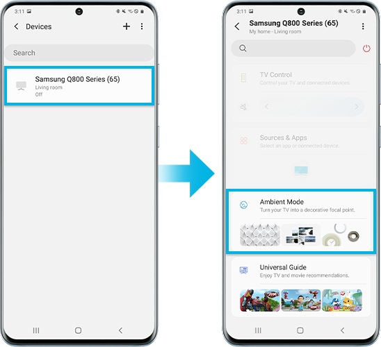 Trinn 2. Velg den tilkoblede TV-en fra enhetslisten, trykk deretter på Ambient Mode.