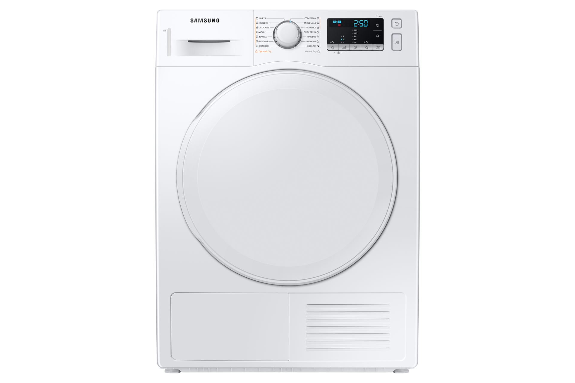 * Kun tilgjengelig på enkelte modeller. 1 Testet i henhold til IEC 61121:2013/8 kg vaskelast/Bomulls-skap med varmepumpe (DV80F5E4HGW) mot uten varmepumpe (DV80H4100CW). Individuelle resultater kan variere.
