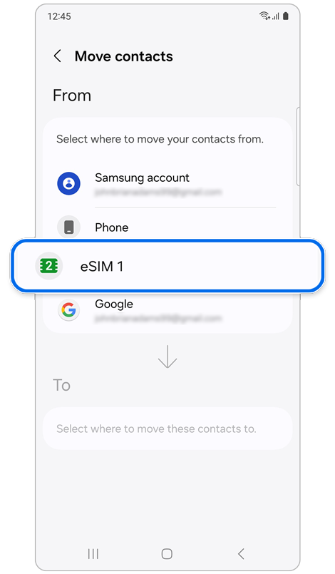 Contacts can be saved in several places besides a Galaxy device, including USIMs, a user's Samsung/Google account, and eSIMs, which utilise the device's storage. For devices running One UI 6.1 or later, the eSIM Contact saving function is no longer supported. Galaxy device users can move their contacts using their phone, Samsung account, Google account, or other accounts.