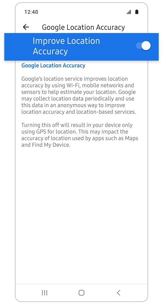 - A GPS issue may arise for Samsung smartphones running Android 10. Your location may appear incorrect due to various reasons: obstructed GPS signal, disabled location settings, or not properly set location option.
