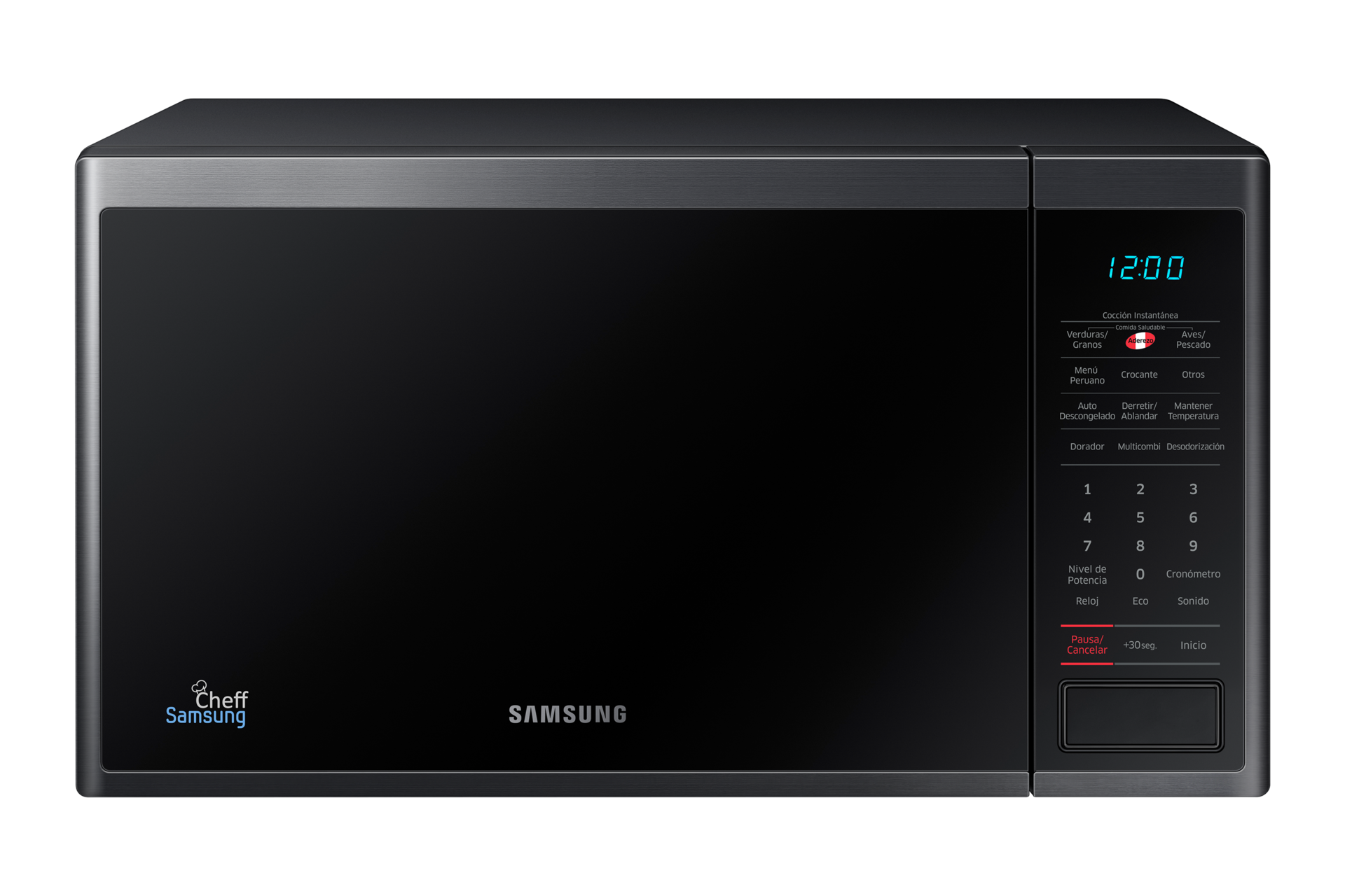 Este microondas ofrece un estilo a la medida de tu cocina. Se han considerado factores de estilo como la tendencia de diseño, colores, materiales, acabados y funcionalidad. En su diseño Samsung ha utilizado acero inoxidable y espejo.
