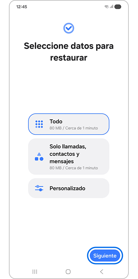 Paso 5. En tu nuevo dispositivo, selecciona los datos que deseas transferir > pulsa Siguiente.