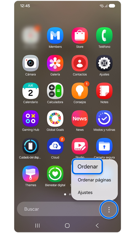 - El orden personalizado es el método de ordenación predeterminado en la serie Samsung Galaxy.