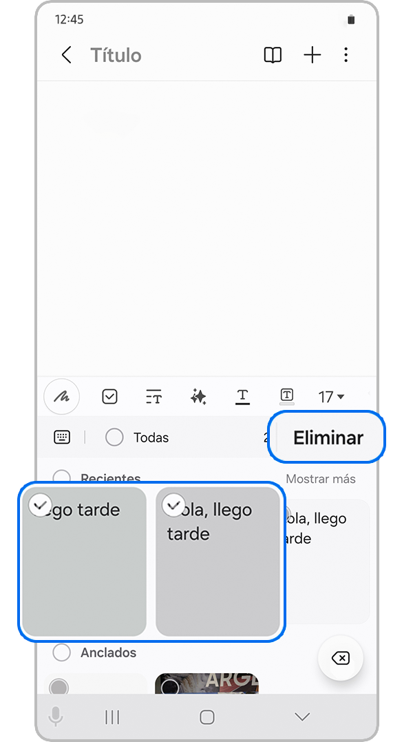 Paso 1. Ejemplo de la aplicación Samsung Notes.