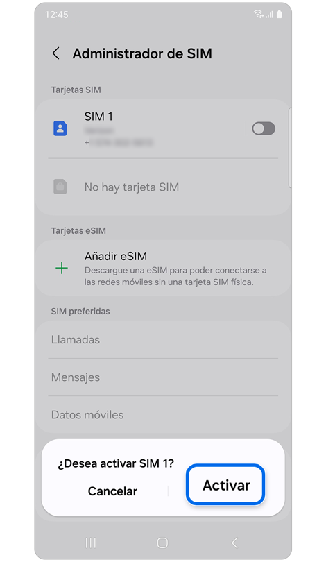 Verifica que la tarjeta SIM esté correctamente instalada y no esté dañada. Si es posible, prueba con otra tarjeta SIM activa. Tu proveedor de servicios puede ayudar con esto si no tienes otra tarjeta SIM.