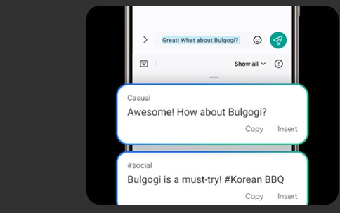 3 Tone suggesting feature in Chat Assist requires a network connection and Samsung Account login. Must meet length requirements to activate features. Service availability may vary by language. Accuracy of results is not guaranteed.