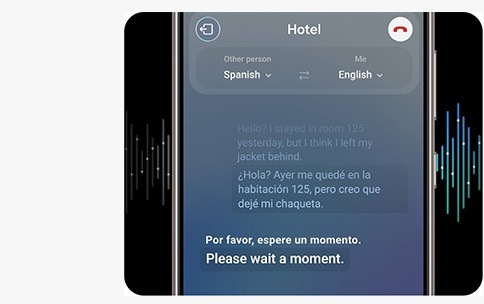 1 Live Translate requires a network connection and Samsung Account login. Live Translate is only available on the pre-installed Samsung Phone app. Certain languages may require language pack download. Service availability may vary by language. Accuracy of results is not guaranteed. Live Translate feature must be enabled and language package must be downloaded prior to use. Translation might not be accurate.
