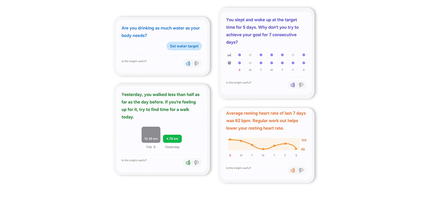 - Energy score and Wellness tips are available on Android phones (Android 11 or above) and requires Samsung Health app (v6.27 or above).