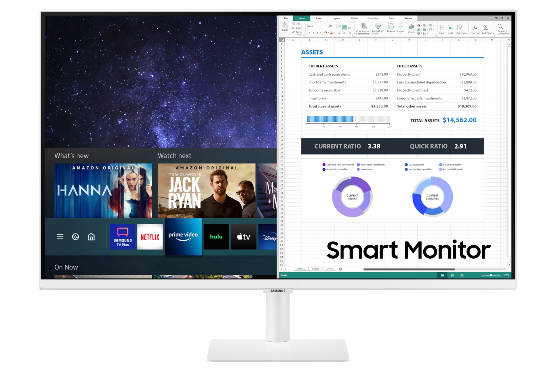 * Windows 10 Pro, Mac OS 10.5, or higher, and compatible network settings are required for this feature**Microsoft 365 requires Microsoft account*** On-screen content simulated for demonstration purpose**** ’Remote Access’ feature will be upgraded to ‘PC on Screen’ as of July 2021Optimal brightness for any ambience