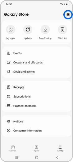 You can update your Galaxy Store settings to automatically update apps you downloaded from Galaxy Store. However, some apps require manual updates even if you set automatic updates. Also, apps you downloaded from another app store cannot be automatically updated from Galaxy Store.
