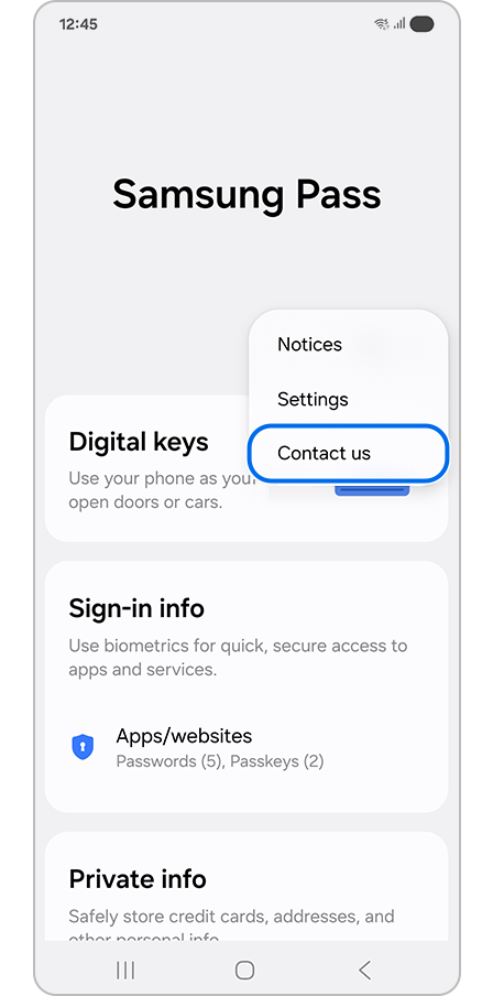 If you experience an error while using Samsung Pass, send a report to Samsung for troubleshooting so the issue can be identified and resolved more quickly. Follow the steps below to send a report.