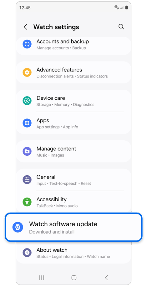 While your phone and watch are connected, you can use the Galaxy Wearable app to regularly check for available updates.