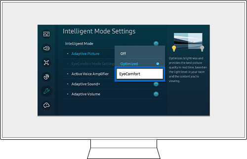 Note: Intelligent Mode must be turned on in order to enable EyeComfort Mode within Picture Mode.