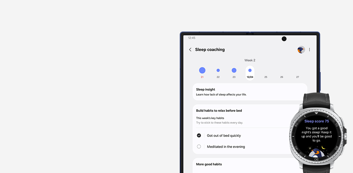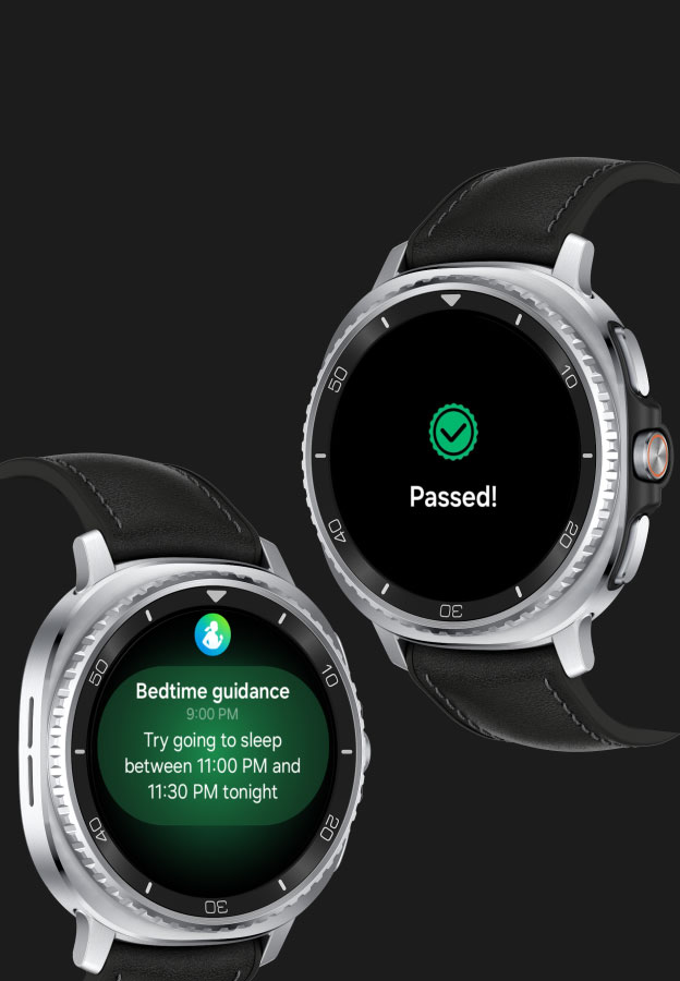 Wake up feeling ready to take on the day with Bedtime Guidance. Based on the sleep data tracked from your Galaxy Watch8 Classic, receive detailed reports on your sleep patterns to understand how much rest you truly need and the best bedtime for you. As your day nears the end, Bedtime Guidance gently nudges you to start winding down, helping you get plenty of sleep to stay sharp and engaged all day.4