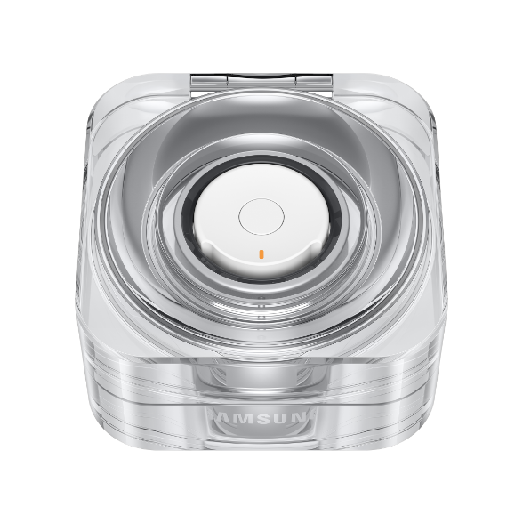 Nawet podczas ładowania w kryształowo przezroczystym etui ładującym, Galaxy Ring przykuwa uwagę. Delikatna poświata wokół przycisku wielofunkcyjnego wskazuje poziom naładowania baterii. Etui można ładować również bezprzewodowo. Wystarczy bezpiecznie umieścić Galaxy Ring w etui, gdy jesteś w podróży, i umieścić go na bezprzewodowej podkładce ładującej, która ułatwia ładowanie. , ,