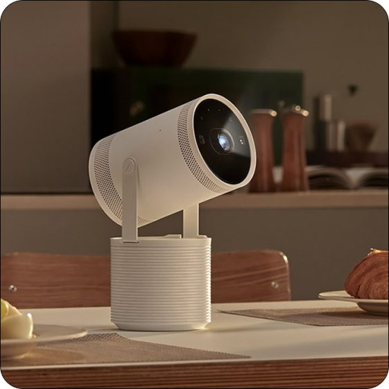 Wyświetlaj treści o przekątnej aż do 100 cali w dowolnym czasie i miejscu dzięki automatycznemu poziomowaniu,