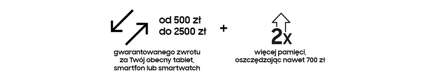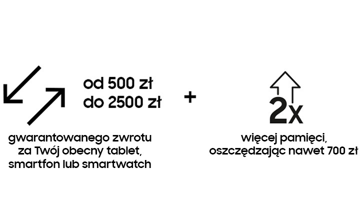 - Programem Odkup objęte są smartwatche, smartfony i tablety (wartość 2500 jest wyznaczona dla konkretnego modelu Tab S7+ 5G 256GB, który jest opisany w disclimerach)