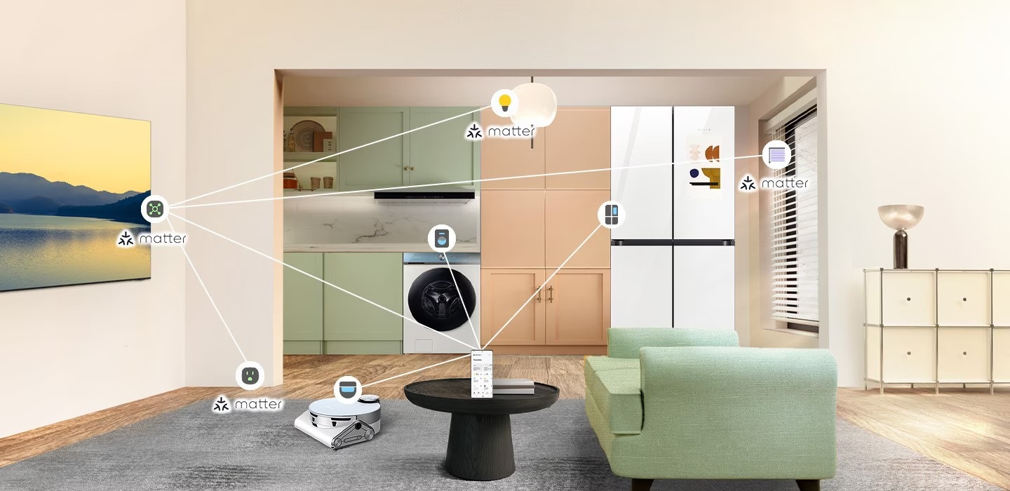 Telewizory Samsung Smart TV z serii Neo QLED, OLED i QLED od modelu Q60C, mogą stać się centralnym punktem w inteligentnym domu. Wszystko dzięki wbudowanemu Hub IoT, który umożliwia budowę ekosystemu SmartThings9,10. Wybierając wyżej wymienione telewizory Samsung, możesz zapomnieć o konieczności stosowania dodatkowych konektorów i modułów.