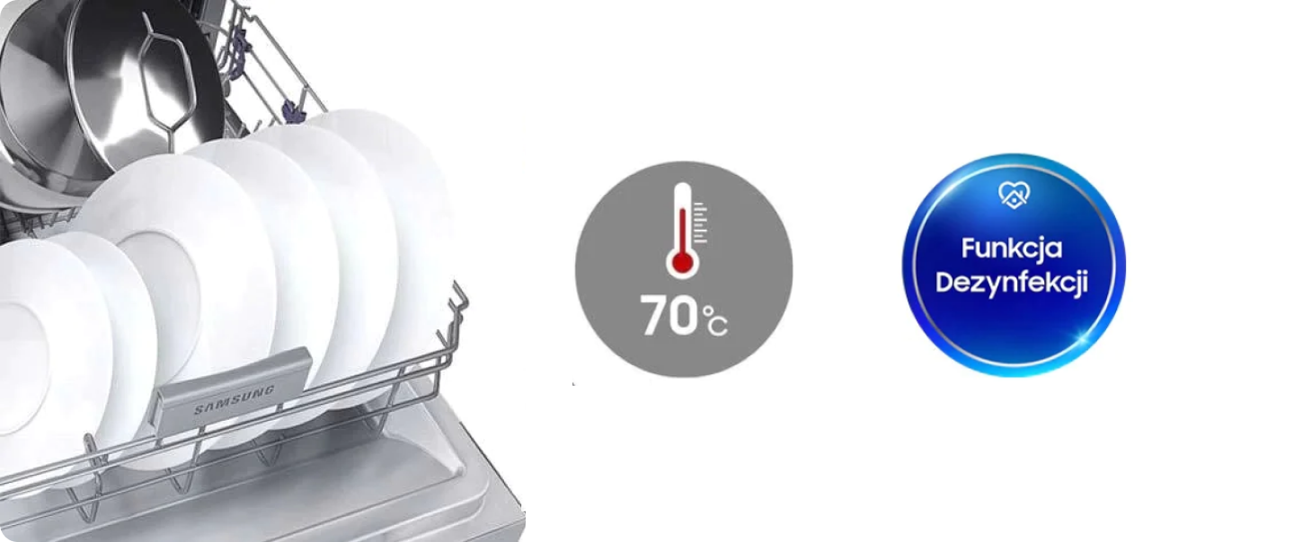 Masz dzieci? By pozbyć się bakterii i drobnoustrojów, skorzystaj z funkcji dezynfekcji. Zmywarka wypłucze naczynia dodatkową falą gorącej wody, by dziecięce naczynia i przybory były sterylnie czyste**. Dzięki temu możesz zapomnieć o ręcznym wyparzaniu butelek na mleko. Funkcja przydaje się również w przypadku syntetycznych desek do krojenia surowego mięsa. Uruchomisz ją wraz z programami Auto, Szybkim, Delikatnym i Samoczynne czyszczenie.