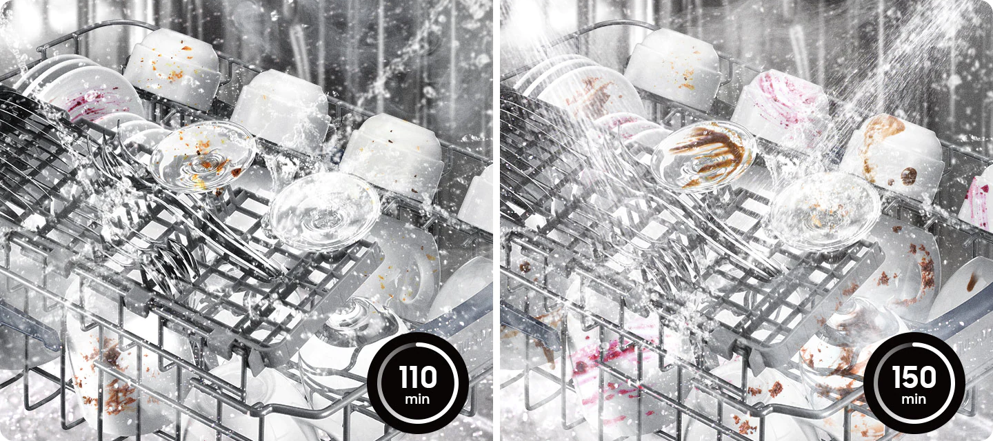 Spieszy Ci się, bo zaraz przyjdą goście? Program ekspresowy skraca pełny cykl mycia i suszenia do niespełna godziny. W 60 minut szklanki, talerze, filiżanki będą gotowe do ponownego użycia. Innym sposobem przyspieszenie cyklu zmywania jest funkcja Speed Booster dostępna np. dla programu Auto w wybranych modelach – z nią niespodziewane wizyty znajomych nie są takie stresujące.