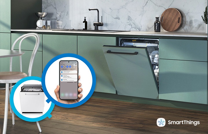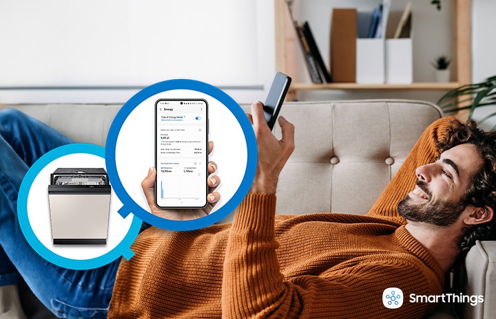 Podłącz zmywarkę Samsung do aplikacji SmartThings, włącz AI Energy Mode i miej wszystko pod kontrolą. SmartThings Energy będzie monitorować i prognozować zużycie energii elektrycznej przez Twoją zmywarkę. Aplikacja wyświetla miesięczne, tygodniowe, dzienne i godzinowe zużycie energii, przewidywane opłaty i wysyła alerty, jeśli zużycie jest zbyt wysokie. Dzięki niej trzymasz rękę na pulsie.