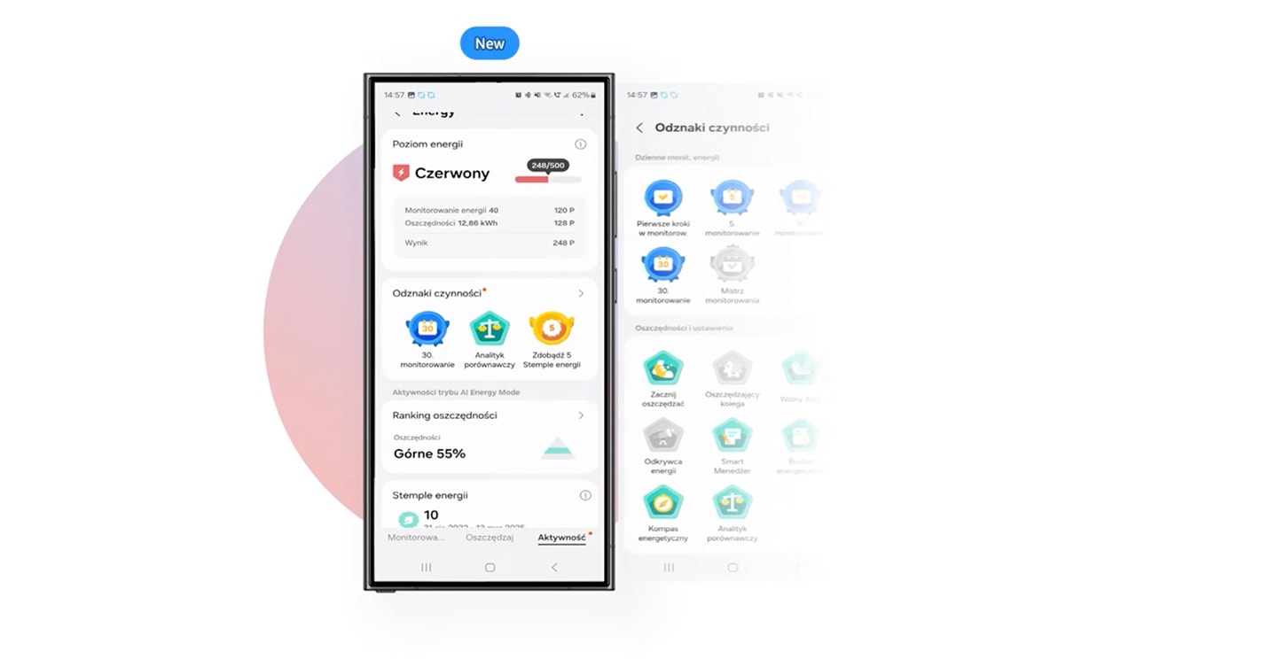Dzięki zakładce Energy w aplikacji SmartThings* możemy na bieżąco monitorować zużycie energii przez lodówkę, zmywarkę czy pralkę** (dotyczy wybranych urządzeń, kompatybilnych ze Smartthings), a nawet otrzymywać powiadomienia, gdy pobór mocy przekracza określony limit. AI Energy Mode dostosowuje działanie urządzeń do naszych potrzeb, optymalizując ich pracę i ograniczając pobór mocy tam, gdzie to możliwe.