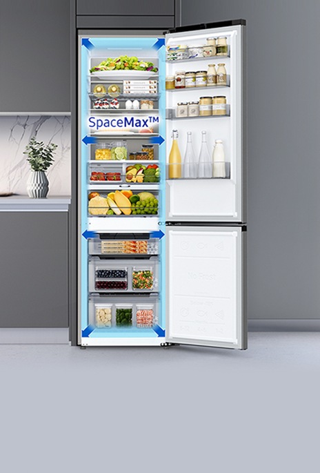 Technologia SpaceMax™ umożliwiła uzyskanie większej przestrzeni użytkowej. Wyjątkowy i wysoko wydajny system izolacji sprawił, że ścianki urządzenia stały się cieńsze. Wnętrze lodówki daje Ci teraz znacznie więcej pojemności do dyspozycji bez zwiększania zewnętrznych wymiarów lub obniżania wydajności energetycznej.