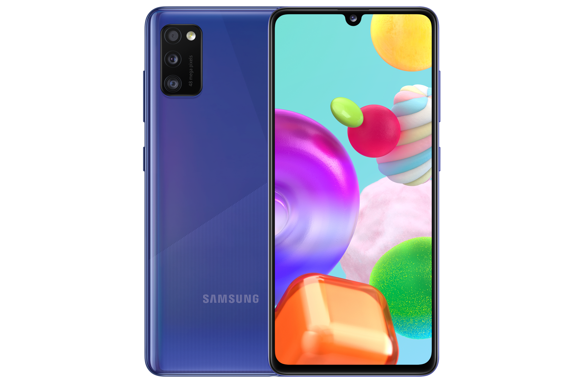 * Mierzony po przekątnej ekran Galaxy A41 ma 6,1” jako pełen prostokąt i 6,0”, jeśli wziąć pod uwagę zaokrąglone rogi. Rzeczywista powierzchnia wyświetlania jest mniejsza z uwagi na zaokrąglone rogi i wycięcie na aparat.