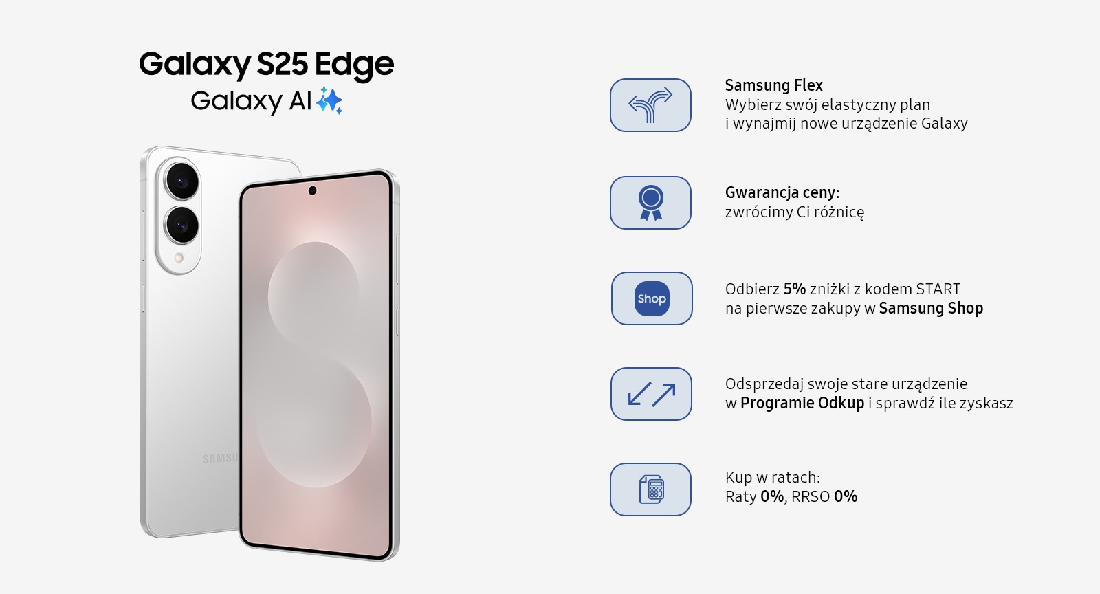- *Gemini jest znakiem towarowym Google LLC. Obowiązują warunki. Subskrybując, akceptujesz warunki korzystania z Google One, AI Credits i ofert. Oferta ważna do 31 Stycznia 2026 r. i dostępna tylko dla osób powyżej 18. roku życia. O ile nie zostanie anulowana wcześniej, po zakończeniu okresu próbnego Google One będzie naliczać opłatę w wysokości 97,99 zł. Możesz anulować subskrypcję w dowolnym momencie. Zwrot zakupionego urządzenia może skutkować anulowaniem subskrypcji. Pełne warunki znajdziesz na https://one.google.com/offer/terms-and-conditions/samsung-s25-6month-trial
