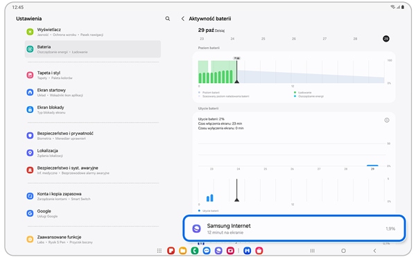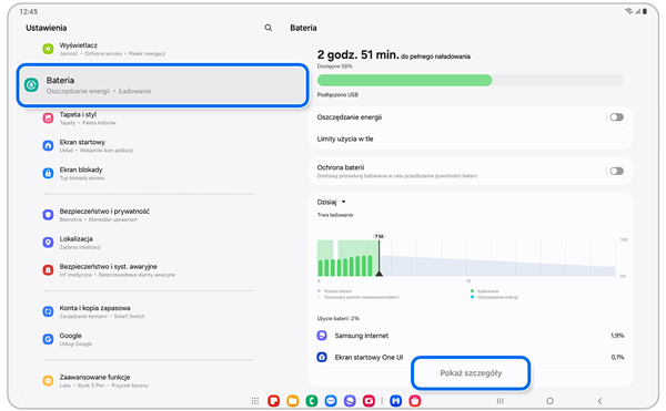 Jeśli Twój Galaxy Tab ma niski poziom baterii, aplikacje wymagające więcej energii mogą spowodować jego nieoczekiwane wyłączenie.