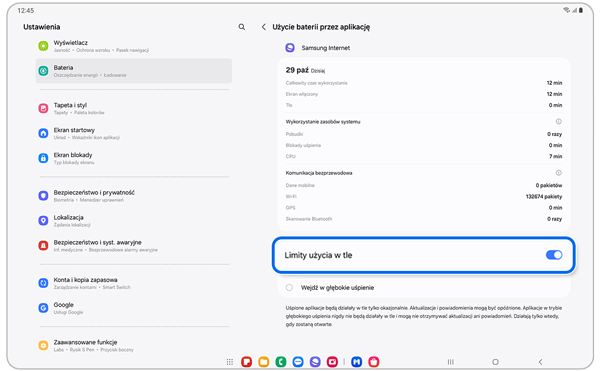 Uwaga: Aktualizacje i powiadomienia mogą być opóźnione, jeśli włączysz Limity użycia w tle.