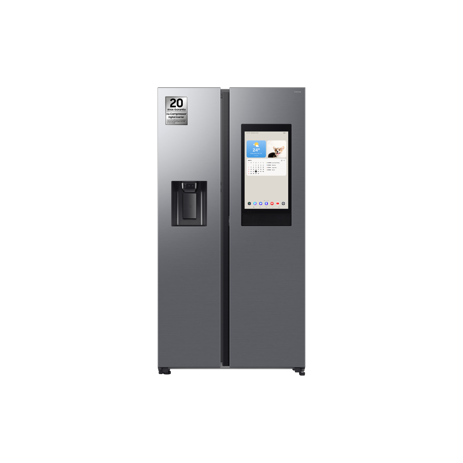 Enriqueça a sua experiência! Pode controlar o frigorífico Family Hub™* facilmente com a sua voz utilizando a Samsung Bixby**. Também pode partilhar fotografias, ouvir música e aceder a informações úteis utilizando o Daily Board (Quadro diário). Com o SmartThings Hub*** incorporado, controle os dispositivos conectados sem hardware adicional.