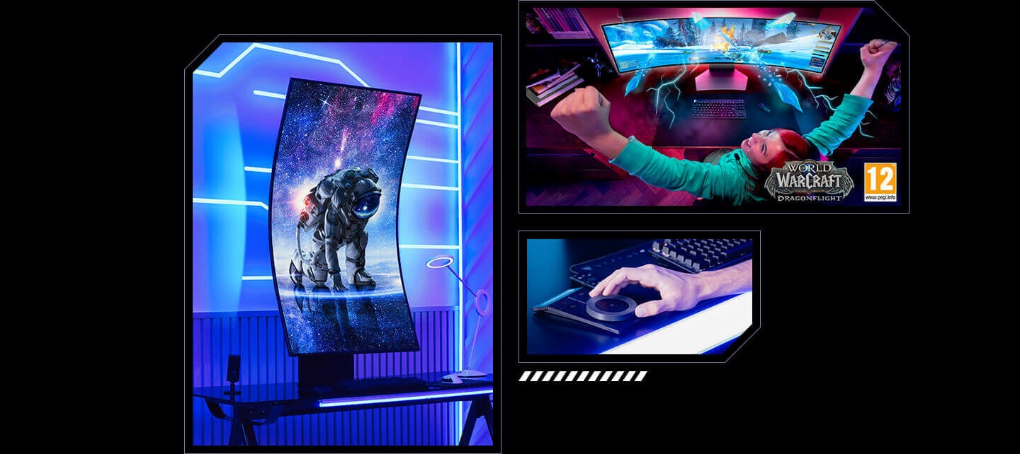 Visão imersiva inovadora num ecrã OLED curvo ultra-amplo com taxa de resposta de 0,03ms e taxa de atualização de 240Hz⁴.