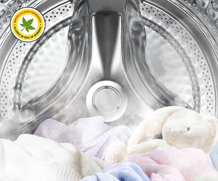 9. Baseado em relatório de testes desenvolvidos pela British Allergy Foundation (BAF) para o ciclo Hygiene Steam (Higienização a Vapor), que considera que este produto, se utilizado corretamente, vai reduzir a exposição a ácaros domésticos, pelos de gatos e de cães, pólen e fungos.