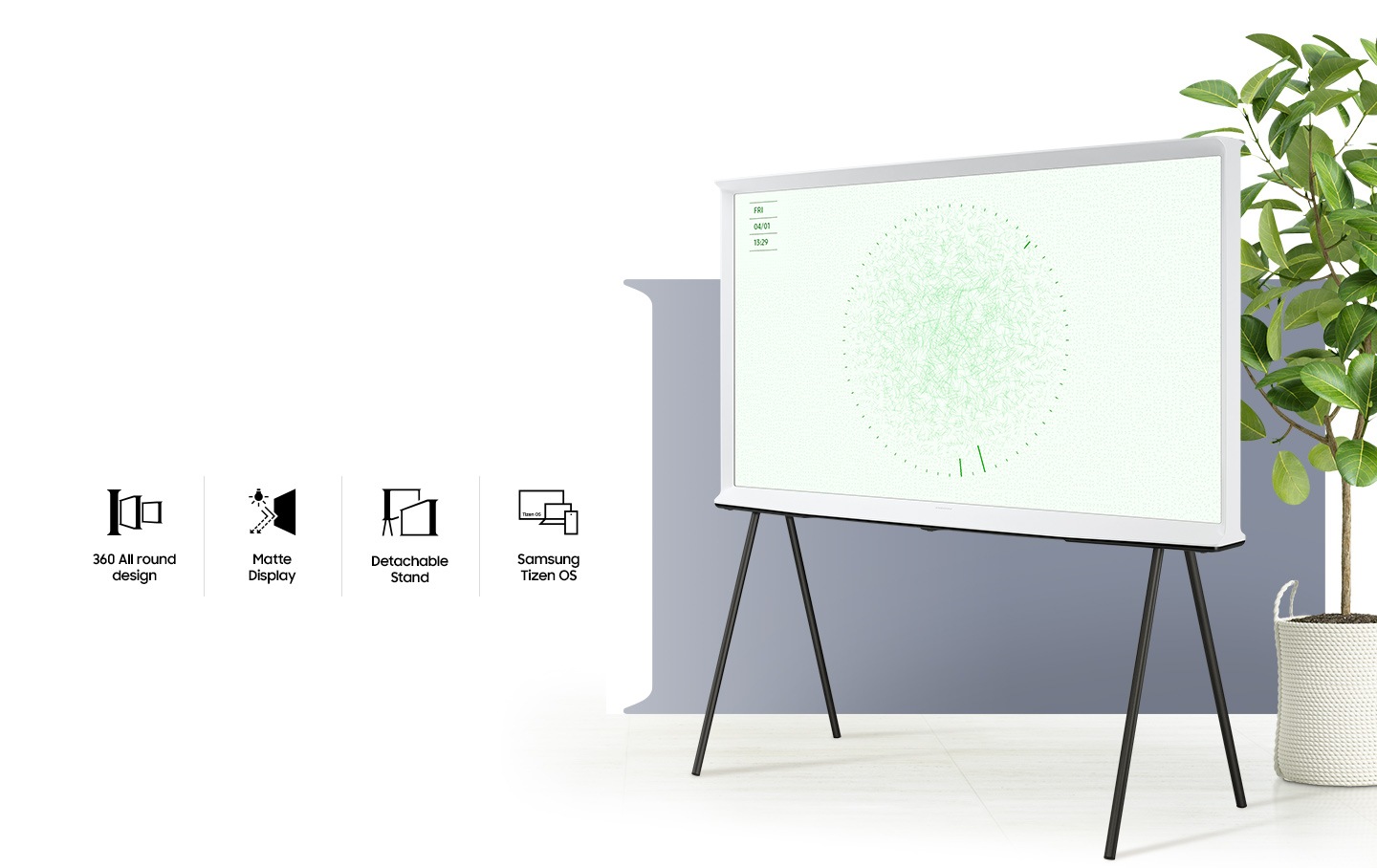 Com o seu perfil em “I” caraterístico, a The Serif tem um ótimo aspeto de todos os ângulos, pelo que ficará bonita em qualquer lugar da sua casa - com ou sem o suporte amovível. Graças à tecnologia QLED e Ecrã Mate, pode ver os seus conteúdos favoritos em resolução 4K com um brilho drasticamente reduzido.
